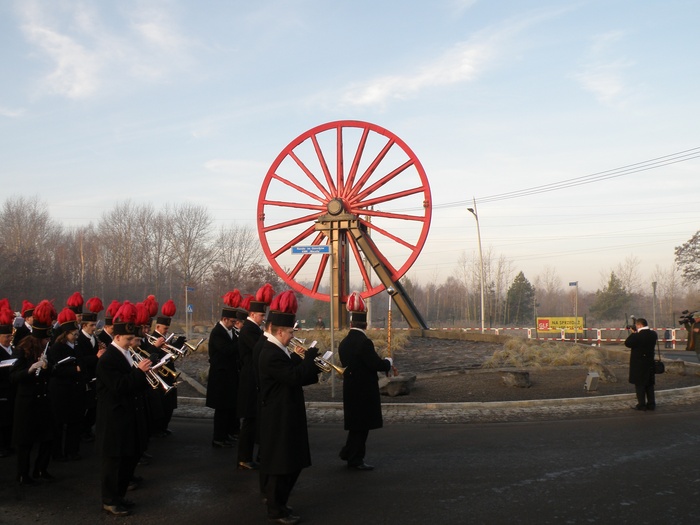 Pochód górniczy wprost spod poświęconego i oficjalnie otwartego ronda, prowadzony przez orkiestrę, udał się do kościoła Matki Boskiej Fatimskiej na uroczystą barbórkową Mszę, a stamtąd na uroczystości górnicze na kopalni.