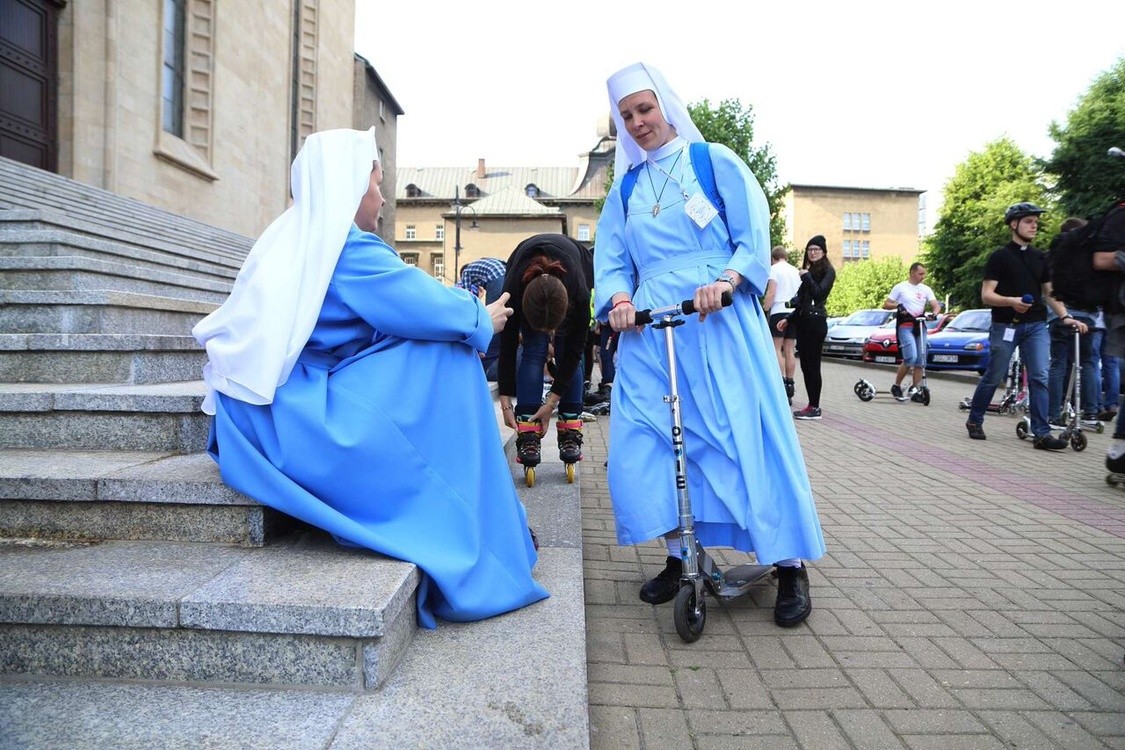 Z Katowic wyruszyła V edycja pielgrzymki na hulajnogach i rolkach. Wśród uczestników, tradycyjnie, znalazły się siostry zakonne - w tym siostra Sara Gembala, służebniczka