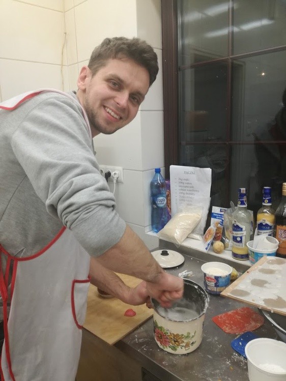 Mateusz Kornas próbuje swoich sił w pieczeniu pączków