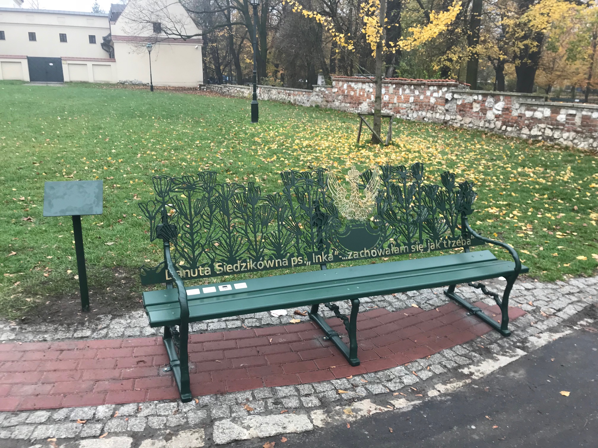 Na papieskiej ławce widnieje napis: "Szukałem was, a teraz przyszliście do mnie". Ławka Danuty Siedzikówny "Inki" nosi jej słowa: "Zachowałam się jak trzeba".