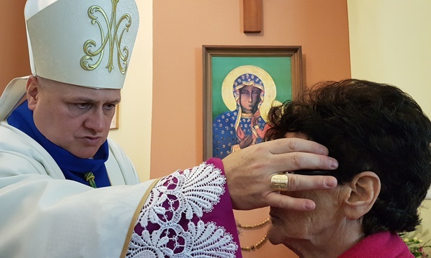 Po homilii ksiądz biskup udzielił pięciu pacjentom sakramentu chorych: po stosownej modlitwie nałożył na nich ręce, a następnie namaścił olejem chorych ich czoła i dłonie.