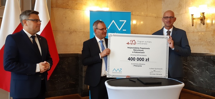 Wiceminister zdrowia - Maciej Miłkowski przekazał dziś w Katowicach czeki na zakup nowych karetek dla województwa śląskiego. Są też dodatkowe pieniądze dla Górnośląskiego Centrum Medycznego w Katowicach.