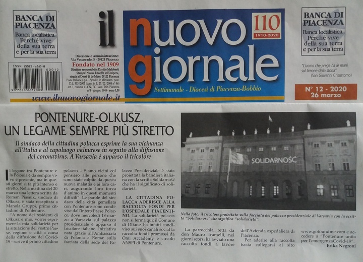 Samorząd Olkusza otrzymał podziękowanie za wsparcie od lokalnych włoskich władz. Wyrazy wdzięczności drukuje również tamtejsza prasa.