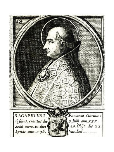Dzisiejszy patron zapisał się nie tylko na kartach historii Kościoła, ale także na stronicach arcydzieła literatury włoskiej - „Boskiej komedii” pióra mistrza Dantego. To tam, w VI pieśni z Raju, możemy przeczytać następujące słowa, jakie bizantyjski cesarz Justynian I "Wielki" kieruje do odbywającego wędrówkę po zaświatach poety:"Wierzyłem w jedną Chrystusa naturę; / Lecz wielki pasterz Agapet z urzędu / Zgromił błąd taki, wycofał mnie z błędu.” Skąd takie słowa u największego władcy z początków VI wieku? To skutek podróży, jaką dzisiejszy patron, św. Agapet I papież, odbył do Konstantynopola. Była to jego ostatnia ziemska pielgrzymka, którą podjął niejako pod przymusem. Oto bowiem cesarz Justynian był w zbrojnym konflikcie z ostrogockim królem Teodahadem, który rządził wtedy Italią. Gdy więc flota bizantyjska zajęła Sycylię, germański władca zmusił papieża, by ten udał się na dwór cesarski do Bizancjum i zatrzymał inwazję, bo inaczej zostaną zamordowani wszyscy senatorowie Rzymu wraz z ich rodzinami. Podróż była długa, św. Agapeta I przyjęto z honorami, ale w międzyczasie kampania wojenna zaszła już za daleko, by jakiekolwiek mediacje podjęte przez papieża miały sens. Zresztą przecież nie z uwagi na swój kunszt negocjatora trafił do „Boskiej komedii”. Tym, co istotnie cechowało dzisiejszego patrona, była niezgoda na błędy w nauczaniu Kościoła. Tak więc po pierwsze, jeszcze w Rzymie, tuż po swoim wyborze na Stolicę Piotrową, ostatecznie zerwał z praktyką nominowania kolejnego papieża przez jego poprzednika i wprowadził zasadę obieralności papieża, dającą większe pole do działania Duchowi Św. Po drugie, swój rodzinny dom na Monte Caelio zamienił w bibliotekę, na podobieństwo Biblioteki Aleksandryjskiej, która miała stać się częścią wielkiego ośrodka studiów religijnych, czyli chrześcijańskiego uniwersytetu, z którego będzie promieniować Prawda. I w końcu po trzecie i najważniejsze: papież Agapet I był zdecydowanym przeciwnikiem arianizmu i monofizytyzmu, a także tego, by świeccy mogli nauczać w Kościele. Dlaczego jednak w ogóle połączył słuszne odrzucenie herezji z umniejszeniem roli laikatu? Z przymrużeniem oka można by powiedzieć tak: bo to nie były czasy Soboru Watykańskiego II. Ale całkiem na poważnie chodziło o to, że w tamtym czasie wszelkim odstępstwom od wiary łatwo dawali posłuch świeccy władcy. Czynili to albo z niewiedzy teologicznej, albo dla doraźnego zysku w walce politycznej. Tak czy inaczej, herezje miały wśród świeckich członków Kościoła sporą popularność, której kres chciał położyć właśnie św. Agapet I. I temu miało służyć zarówno zakazanie świeckim publicznego nauczania w sprawach wiary, jak i odsunięcie od sprawowania czynności kapłańskich wszystkich duchownych, którzy odeszli od nauczania Kościoła – w tym przypadku arian i monofizytów. Tak było na przykład z monofizyckim patriarchą Konstantynopola, Antymosem, któremu wyraźnie sprzyjał wspomniany już tutaj cesarz Justynian I Wielki, a którego usunął z urzędu właśnie nasz dzisiejszy patron, gdy z konieczności złożył wizytę nad Bosforem. Cesarz powrócił więc tym samym do ortodoksji, a św. Agapet I mógł w spokoju odejść z tego świata po nagrodę w niebie. Kiedy to było? 22 kwietnia roku 536.