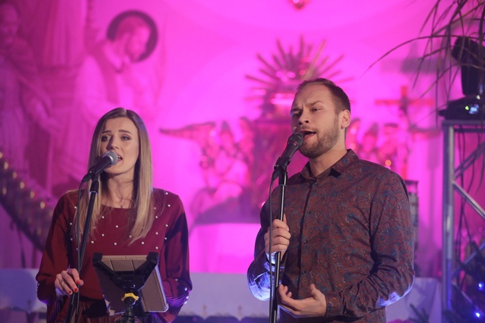 - Bardzo żałujemy, że nie możecie być z nami, ale wierzymy, że jesteście online i będziecie też śpiewać, bo my zaśpiewamy przede wszystkim kolędy polskie, które dobrze znacie - zapowiadali wykonawcy: Paulina Grochowska i Kuba Jurzyk, którzy w Pogórzy wystąpili wraz kwartetem smyczkowym Golden Gate String Quartet. Wspólnie poprowadzili słuchaczy szlakiem kolędowym tak, by myśli wędrowały ku Jezusowi. - Bo to On tu jest najważniejszy i Jemu śpiewamy - podkreślali artyści.