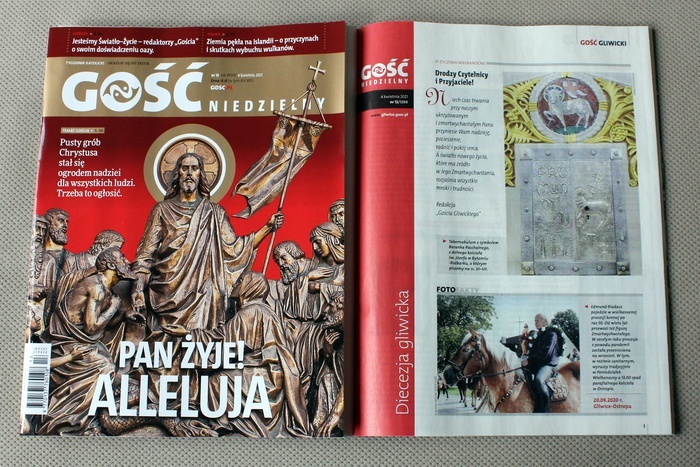W „Gościu Gliwickim" na Niedzielę Wielkanocną można przeczytać także m.in. o Edmundzie Biadaczu, który w tym roku po raz 50. pojedzie w wielkanocnej procesji konnej, relację z pogrzebu śp. ks. Waldemara Glowki, proboszcza z Łagiewnik Wielkich, o historii rzeźby Chrystusa Zmartwychwstałego, która znajduje się w galerii Starego Opactwa w Rudach oraz wystawie „Górnośląskie kroszonki 2012–2021” przygotowanej przez bytomskie muzeum.