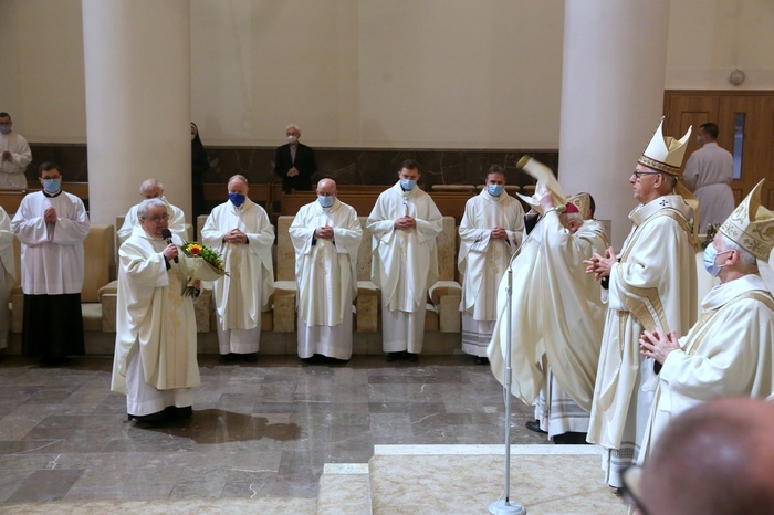 Na zakończenie w imieniu prezbiterium życzenia złożył ks. dziekan Zenon Ryzner. Podziękował za pasterskie czuwanie w trudnym czasie pandemii, za wirtualną obecność i troskę o duszpasterzy i o wiernych. – Księże arcybiskupie! Życzymy, abyś mógł w pełni wrócić do duszpasterskiej aktywności, byś dalej umacniał nas w wierze, mobilizował i aby Duch Święty, który jest Twoim szczególnym przewodnikiem, nieustannie dodawał ci sił – podkreślił ks. Ryzner.