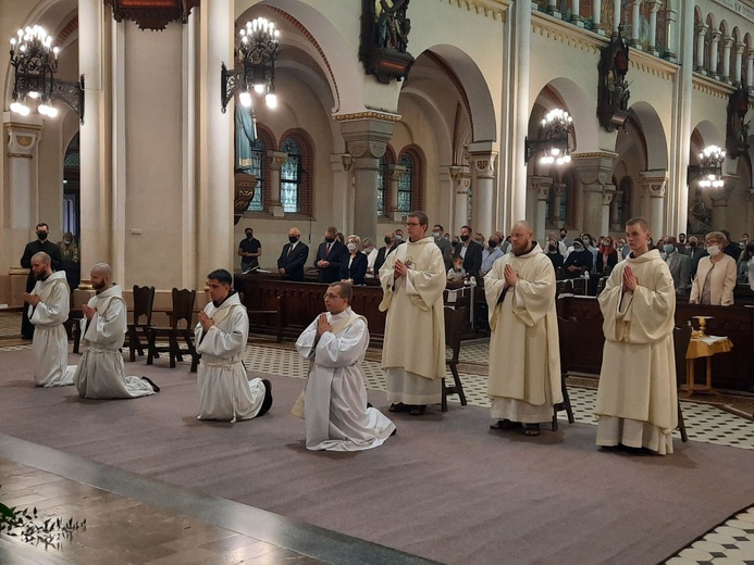 Bądźcie apostołami międzyludzkiego braterstwa - mówił podczas świeceń w Bazylice oo. franciszkanów w Katowicach-Panewnikach abp Wiktor Skworc. Metropolita katowicki udzielił sakramentu święceń diakonatu trzem alumnom franciszkańskim oraz święceń prezbiteratu trzem franciszkanom oraz jednemu cystersowi.