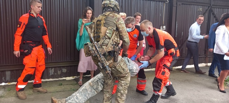Wybuch podczas prac pirotechnicznych w budynku przy ul. Mikołowskiej. To scenariusz ćwiczeń służb, które odbywały się w Katowicach. Wspólne działania antyterrorystów, policjantów i ratowników medycznych miały pomóc im lepiej współpracować w przypadku realnego zagrożenia.