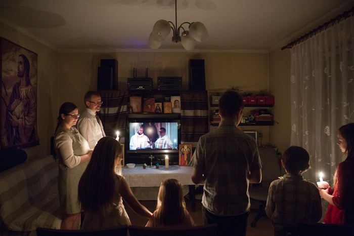 Zdjęcie rodziny ze Szczerbic koło Rybnika, która z powodu pandemii uczestniczy w Wigilii Paschalnej w swoim domu, korzystając z transmisji internetowej, wygrało w konkursie Śląskiej Fotografii Prasowej 2020 w Bibliotece Śląskiej. Jego autorem jest Dominik Gajda.
