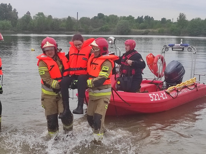 Trzynastu uczniów uwięzionych na wyspie - w warunkach gwałtownie wzrastającego poziomu wody. Taki scenariusz ćwiczyły mysłowickie służby na terenie akwenu Hubertus.