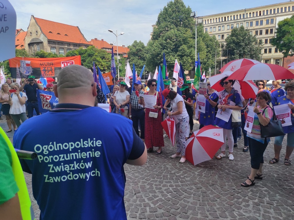 W Katowicach zakończył się wiec Ogólnopolskiego Porozumienia Związków Zawodowych i Związku Nauczycielstwa Polskiego. W całym kraju związkowcy pikietują Urzędy Wojewódzkie i domagają się podwyżek.