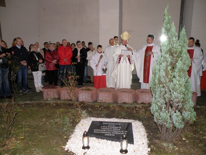 Cmentarz powoli zanikał, upływ czasu zmniejszał obszar grzebalny przy kościele. Wykopane podczas prac gruntowych szczątki pogrzebanych tu przed wiekami parafian złożono w jednym, godnym miejscu na placu kościelnym. Właśnie to miejsce zostało upamiętnione tablicą pamiątkową.