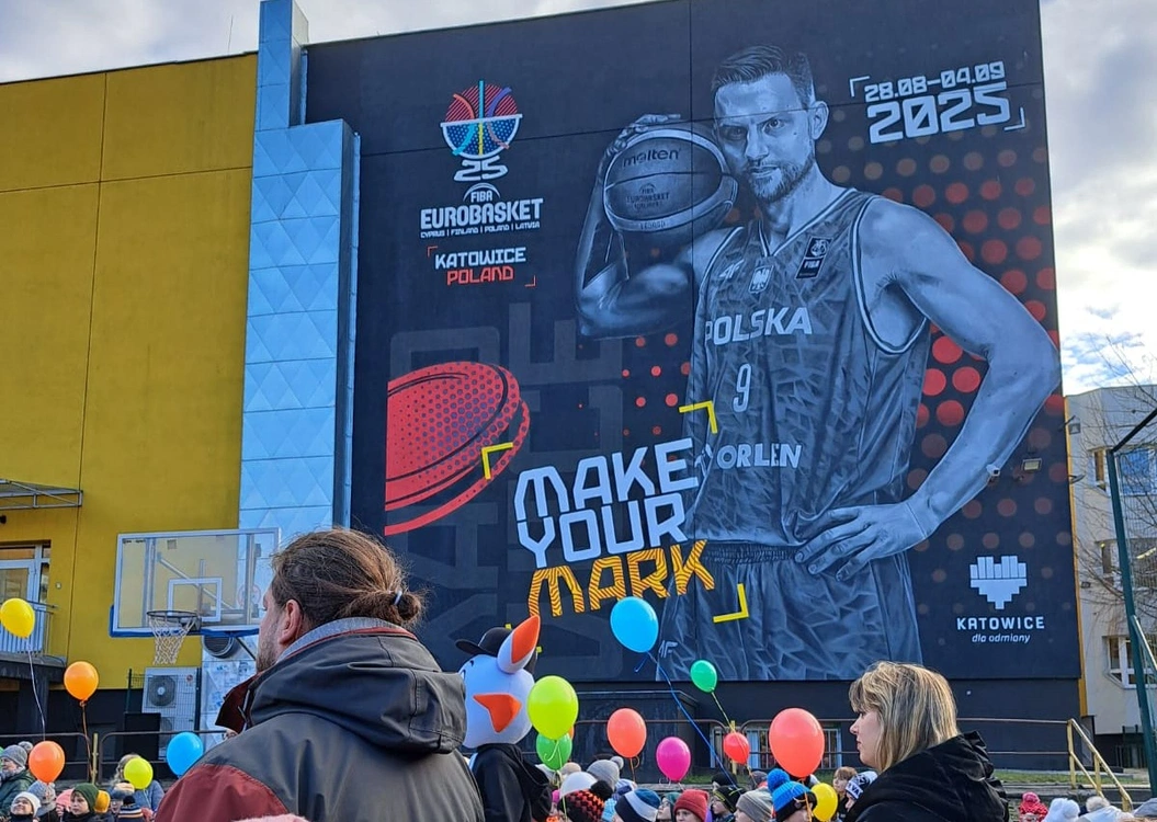 Katowice promują EuroBasket. Już na przełomie sierpnia i września 2025 odbędzie się faza grupowa turnieju. Dlatego na ścianie hali sportowej przy Szkole Podstawowej nr 27 w Katowicach pojawił się mural z Mateuszem Ponitką. Okazuje się, że kapitan koszykarskiej reprezentacji Polski dobrze zna to miejsce: