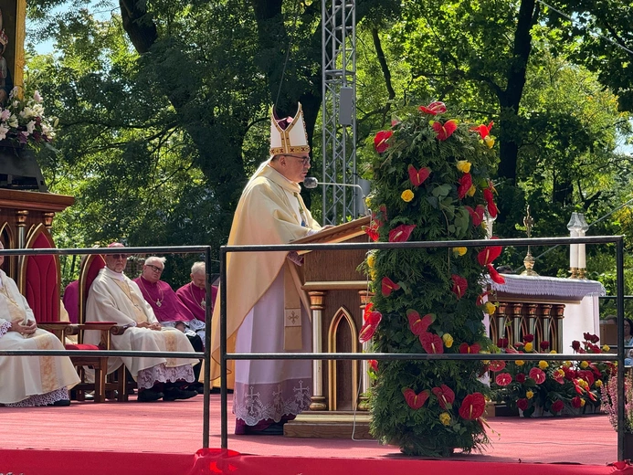 1. Z wielką radością wracam do sanktuarium w Piekarach, aby po raz pierwszy uczestniczyć w tej pielgrzymce, o której wiele słyszałem. Dziękuję administratorowi diecezji, księdzu biskupowi Markowi, za uprzejme zaproszenie. Pozdrawiam wszystkich zebranych biskupów, kapłanów, osoby życia konsekrowanego, a przede wszystkim Was, drogie kobiety i dziewczęta, które pielgrzymujecie do Matki Bożej Piekarskiej. Jako przedstawiciel Papieża w Polsce proszę Was o modlitwę za Ojca świętego Leona Czternastego przed obrazem Matki Sprawiedliwości i Miłości Społecznej.
