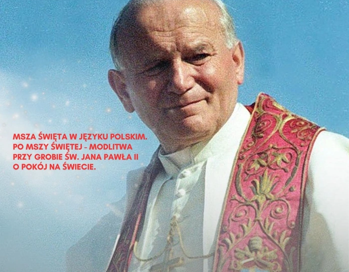 Eucharystia sprawowana będzie w języku polskim. Po jej zakończeniu wierni wezmą udział w modlitwie przy grobie św. Jana Pawła II w kaplicy św. Sebastiana, słowami modlitwy o pokój ułożonej przez Papieża Polaka.