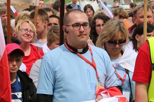Po czterech dniach marszu i modlitwy prawie 2 tysiące pielgrzymów wraz z witającymi ich bliskimi oraz parafianami zakończyło swoją wędrówkę w sanktuarium Bożego Miłosierdzia. By uczcić przypadającą w tym roku 1050. rocznicę chrztu Polski, każdy pielgrzym niósł biało-czerwona flagę. Po uczczeniu relikwii św. siostry Faustyny Kowalskiej przeszli przez Bramę Miłosierdzia w bazylice, gdzie zgromadzili się na Koronce do Bożego Miłosierdzia i Mszy Świętej z zawierzeniem się Bożemu Miłosierdziu. Koncelebrowanej Eucharystii przewodniczył bp Piotr Greger.
