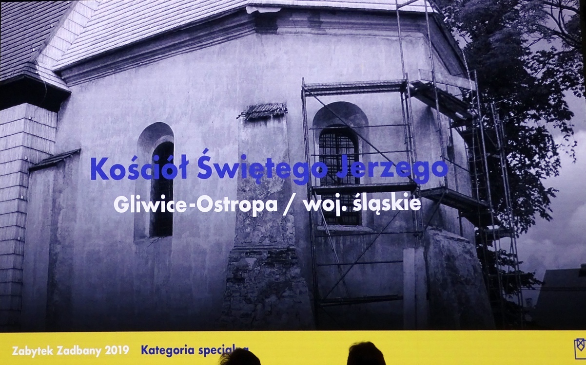 Gala konkursu "Zabytek Zadbany 2019", która odbyła się 24.04.2019 r. w Gdynii. W kategorii specjalnej za "właściwe użytkowanie i stałą opiekę nad zabytkiem" zwyciężył zabytkowy drewniany kościół św. Jerzego w Gliwicach-Ostropie. Nagrodę ks. Michał Wilner odebrał z rąk Generalnego Konserwatora Zabytków, dr hab. prof. IH PAN Magdalena Gawin oraz Dyrektora Narodowego Instytutu Dziedzictwa Bartosza Skaldawskiego.