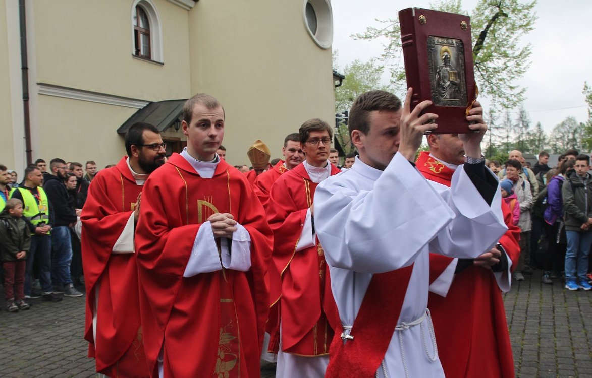 Msza święta pod przewodnictwem bpa Romana Pindla, sprawowana dziś w samo południe w sanktuarium Matki Bożej Bolesnej, rozpoczęła piesze pielgrzymowanie około 1800 pątników do sanktuarium Bożego Miłosierdzia w Łagiewnikach. Najstarsza pątniczka to 84-letnia Ludmiła Kołoczek, a najmłodszy - ośmiomiesięczny Grześ Garus. To oni na koniec Mszy św. wręczyli pielgrzymią legitymację bp. Pindlowi.
